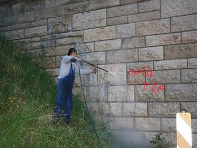 Graffitientfernung auf Autobahntoiletten, Brücken oder sonstigen Untergründen